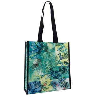 Promotional Customized logo full color printing reusable 80gsm shiny laminated Non woven tote shopping bag